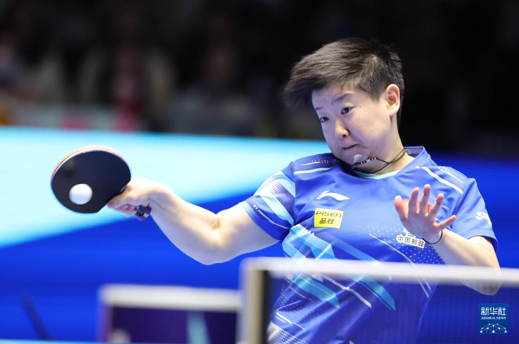2月22日,孙颖莎在比赛中回球。