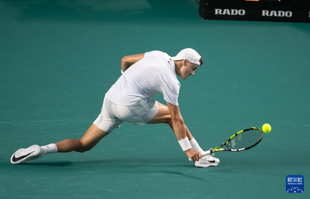 2月25日,丹麦选手鲁内在比赛中回球。
