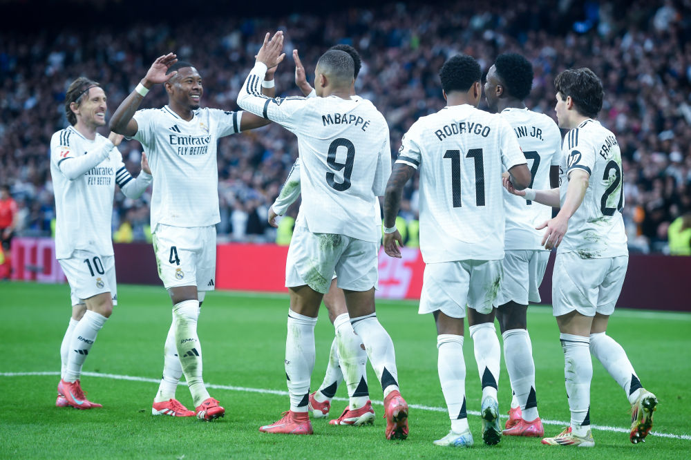 皇马本轮在伯纳乌球场迎战同城对手巴列卡诺。开场后双方互有往来。第30分钟,姆巴佩突入禁区左路,晃过一名防守队员,低射球门右下角得手,为主队取得领先。4分钟后,维尼修斯左路带球过人后内切入禁区,在小禁区左角附近推射破网,将比分扩大为2:0。