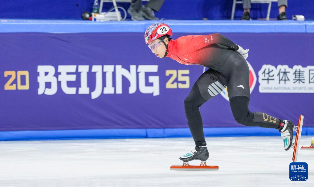当日,2025年国际滑联世界短道速滑锦标赛男子1500米四分之一决赛在北京首都体育馆进行。