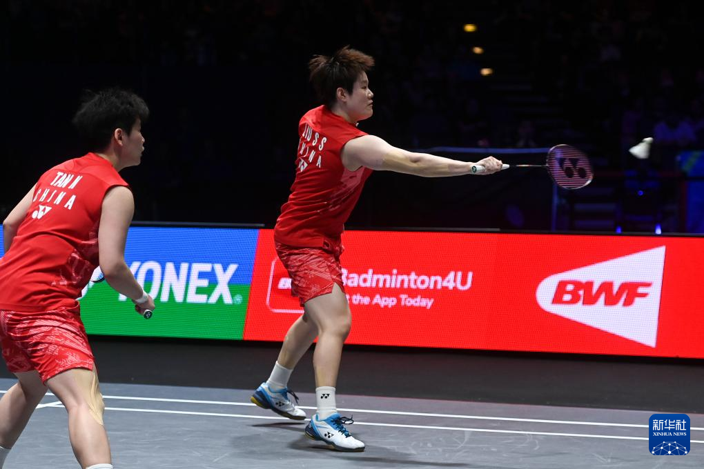 3月15日,松山奈未/志田千阳(左)在比赛中。