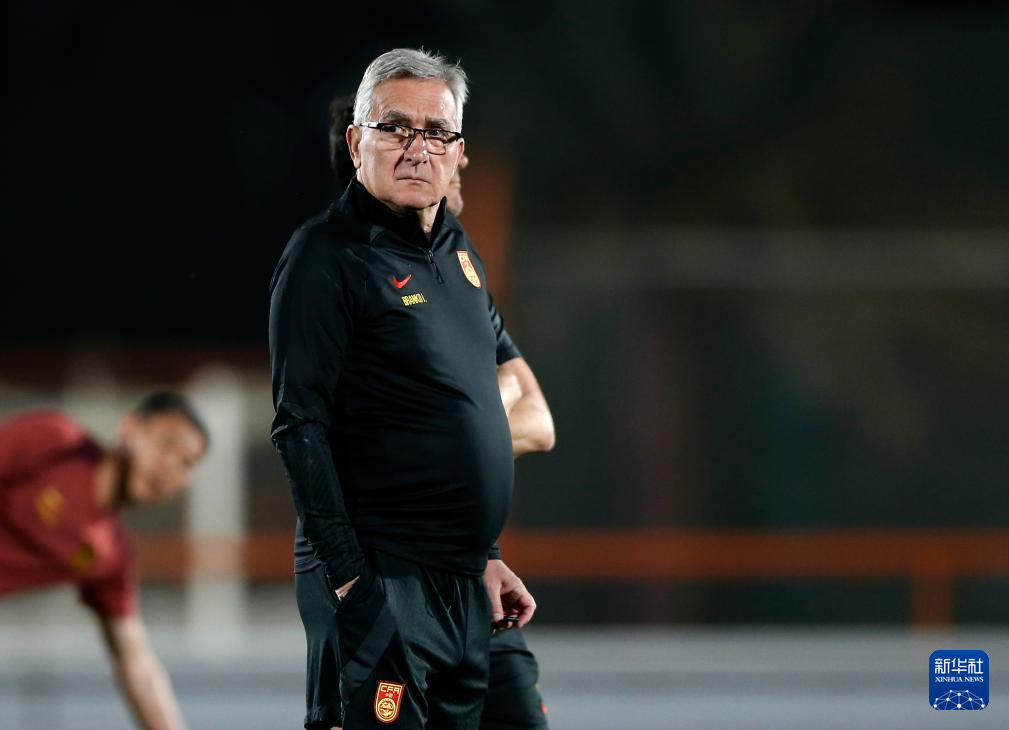 3月18日,中国队主教练伊万科维奇(右)在训练中。
