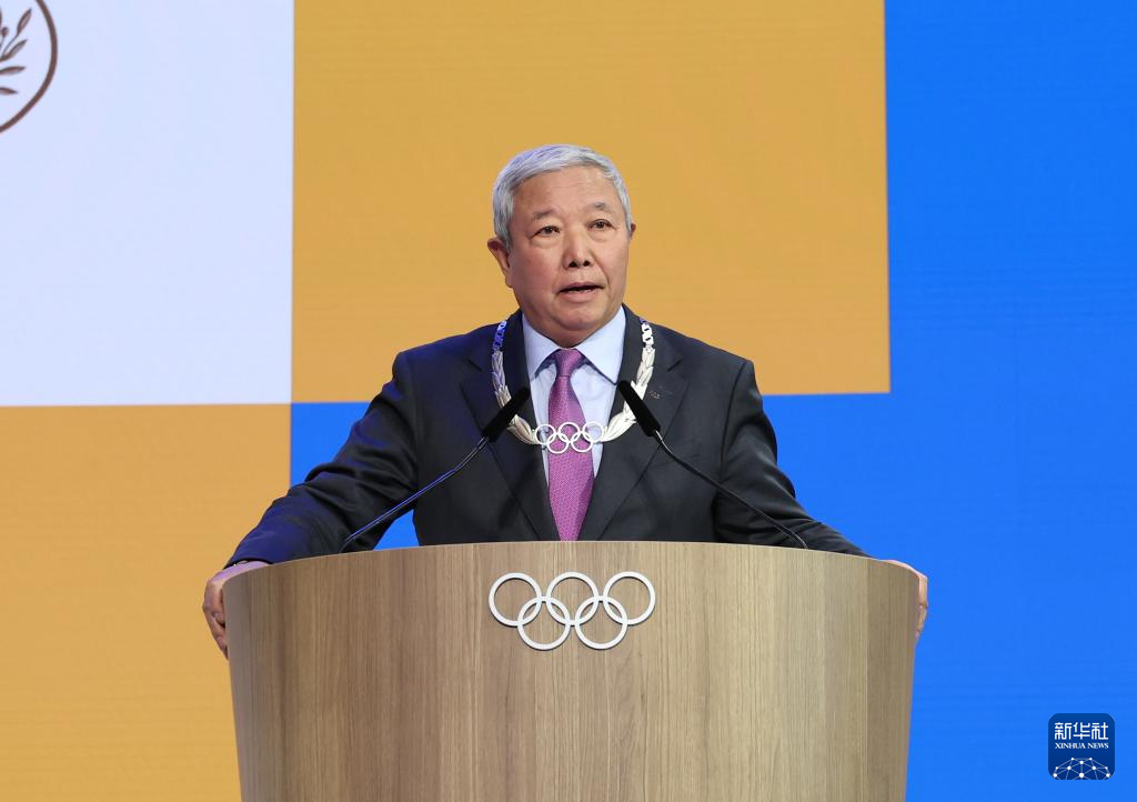 3月21日,国际奥委会委员于再清在受颁奥林匹克奖章后发言。
