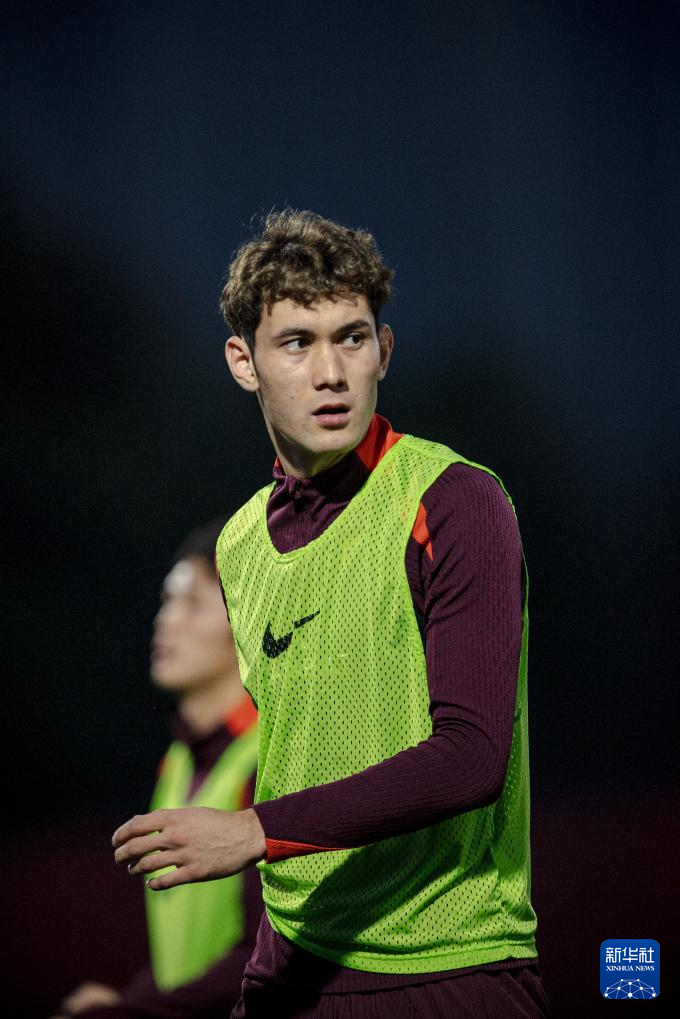 3月23日,中国队球员拜合拉木在训练中。