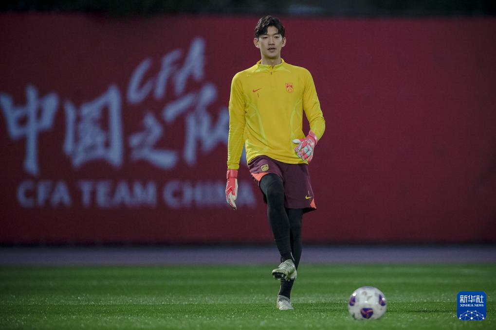 3月23日,中国队守门员颜骏凌在训练中。