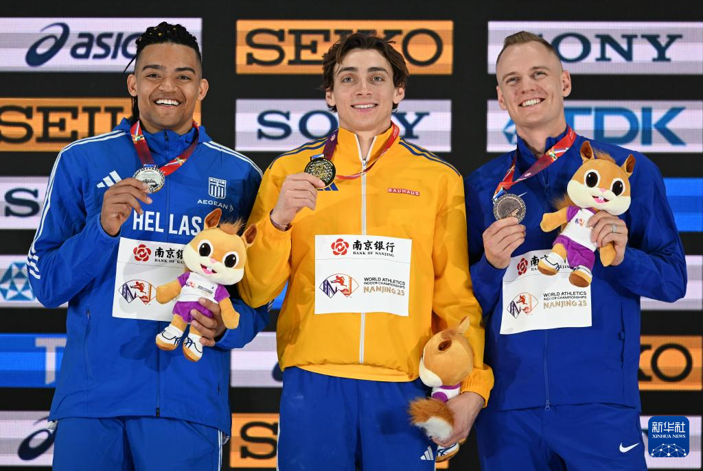 当日,在2025南京世界田联室内锦标赛男子撑杆跳高决赛中,瑞典名将杜普兰蒂斯以6米15的成绩夺得冠军,希腊选手卡拉利斯以6米05的成绩获得亚军并创造新的希腊国家纪录,美国选手肯德里克斯获季军。