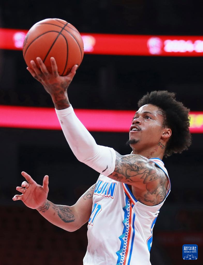 3月23日,福建晋江文旅队球员约瑟夫·杨在比赛中上篮。