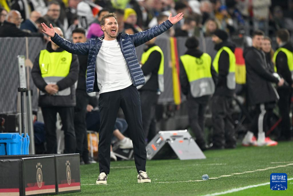 当日,在2024-2025赛季欧国联A联赛四分之一决赛次回合比赛中,德国队主场3比3战平意大利队,以两回合5比4的总比分晋级四强。