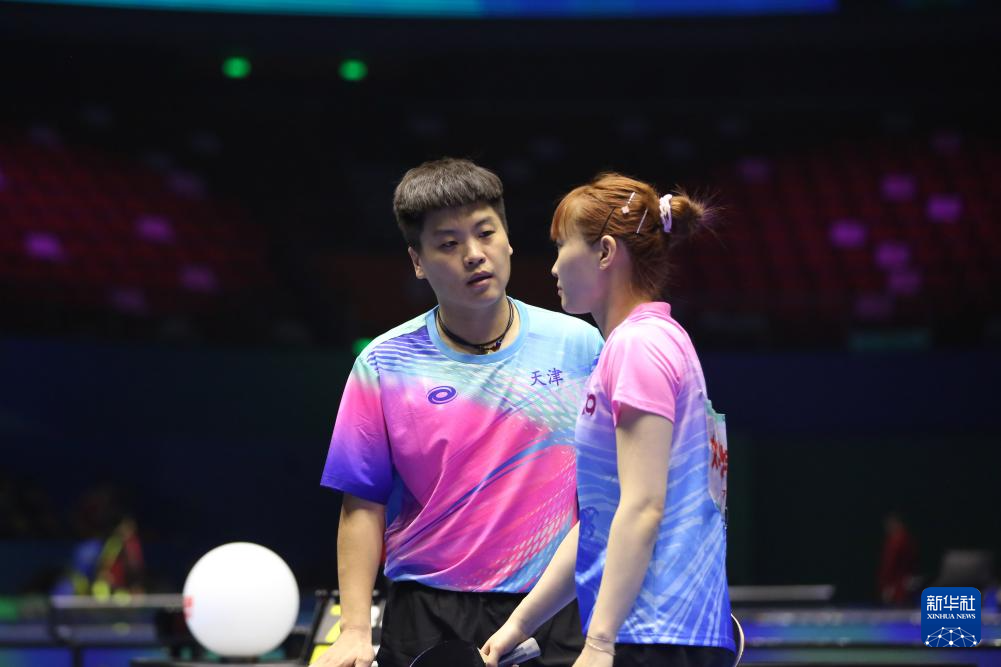 3月25日,郝帅(天津银河队,左)/刘炜珊(天津729队)在比赛中。他们2比3不敌辽宁队组合徐海东/陈幸同。