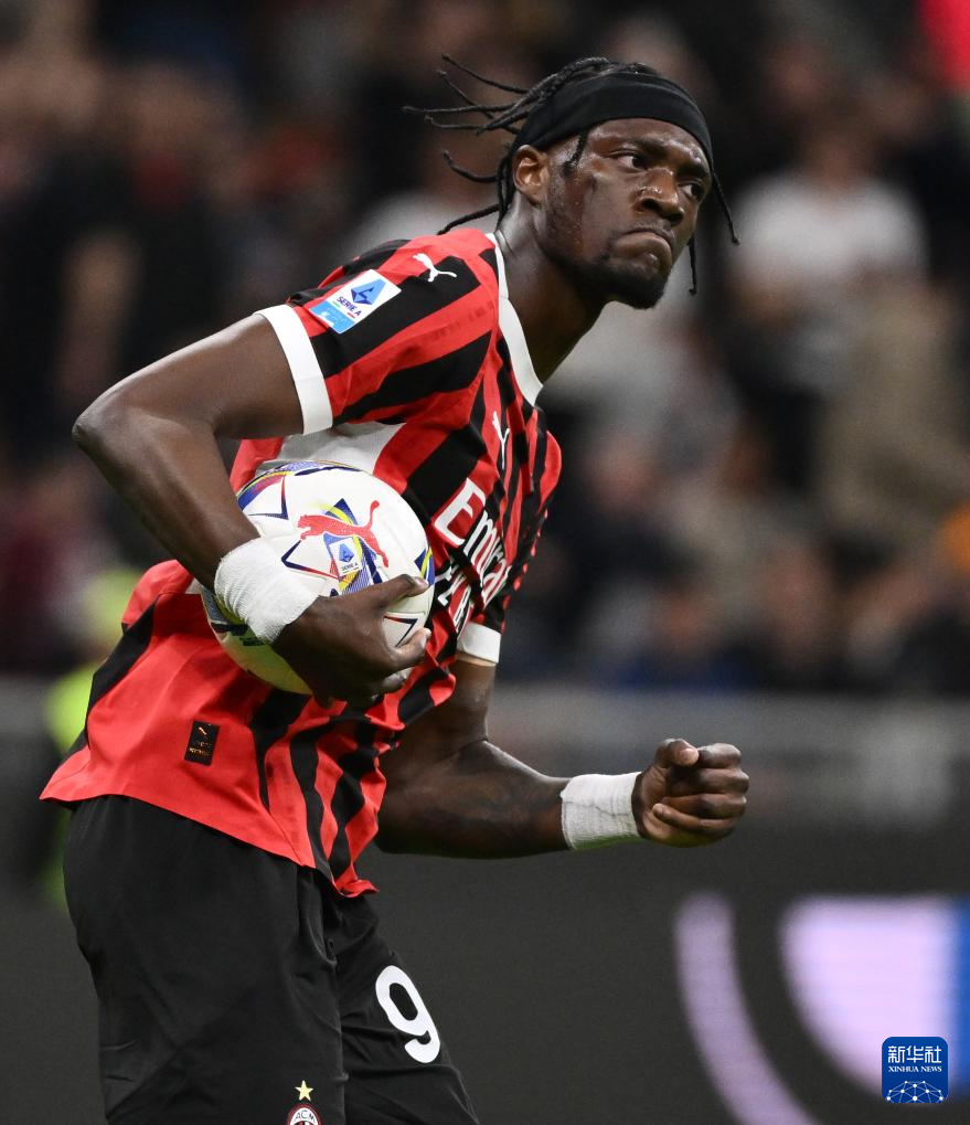4月5日,AC米兰队球员亚伯拉罕庆祝进球。