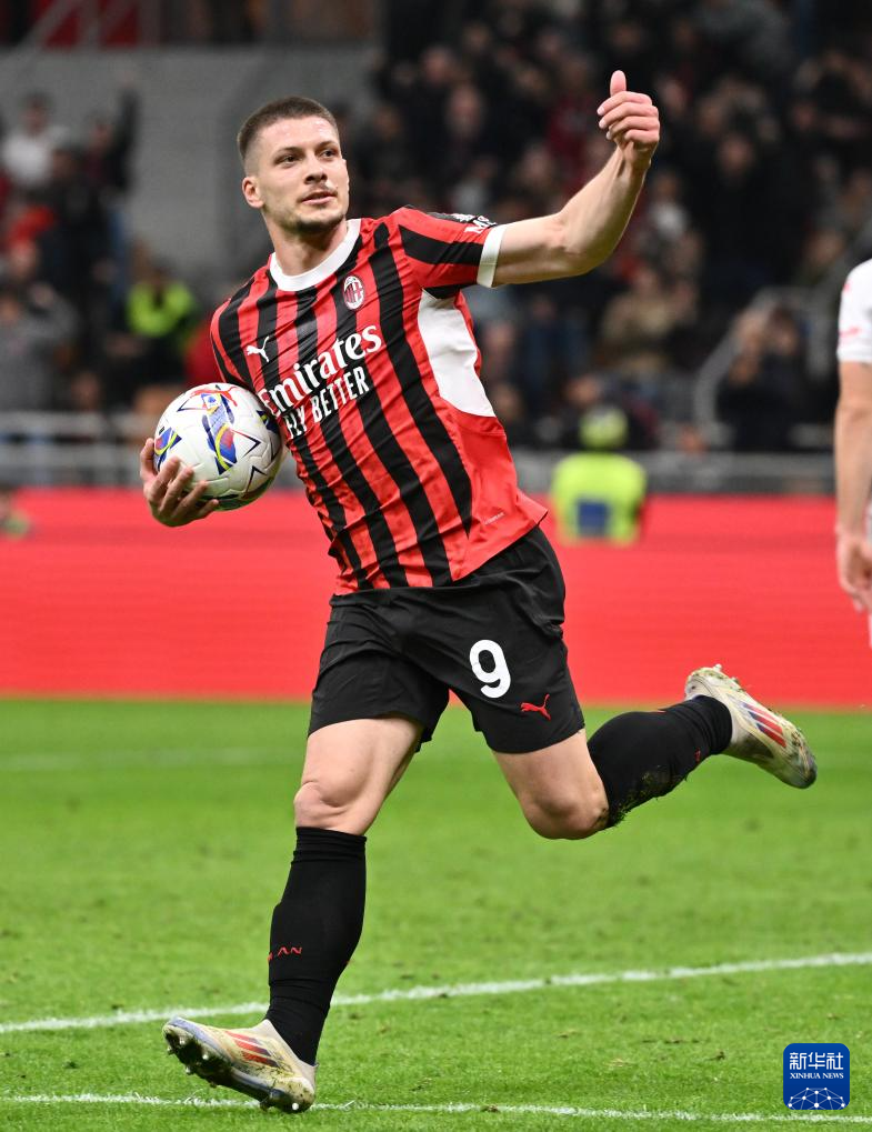 4月5日,AC米兰队球员约维奇庆祝进球。