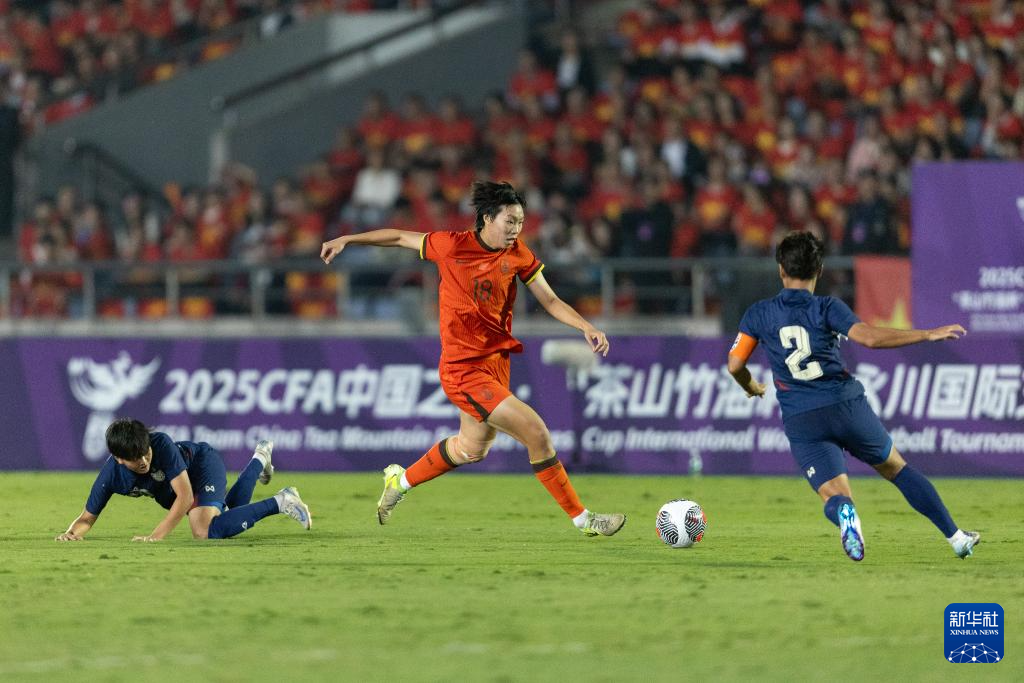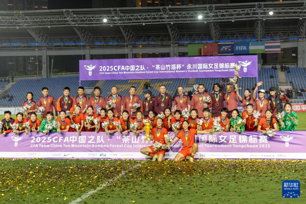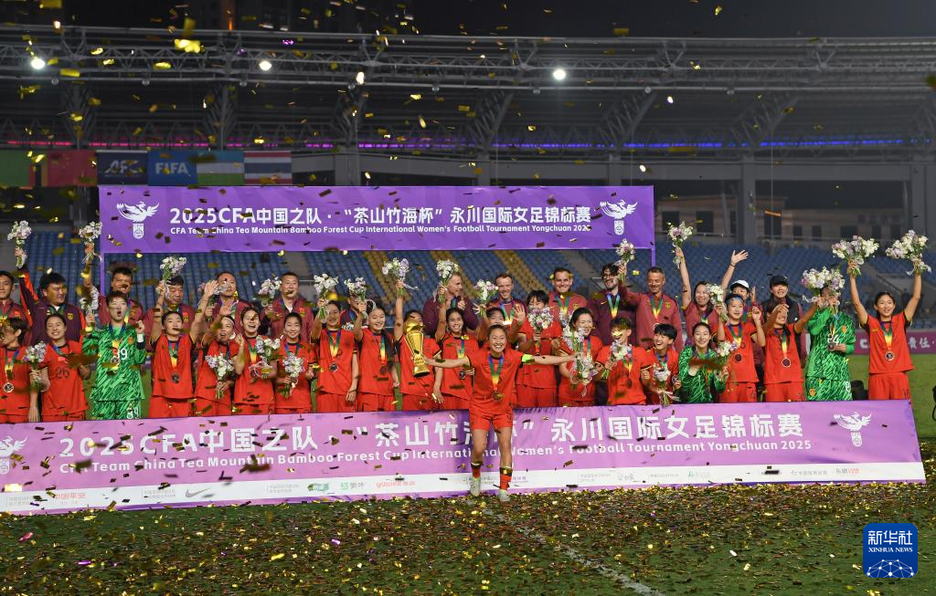 当日,在重庆市永川区举行的2025CFA中国之队·永川国际女足锦标赛决赛中,中国队5比1战胜泰国队,获得冠军。