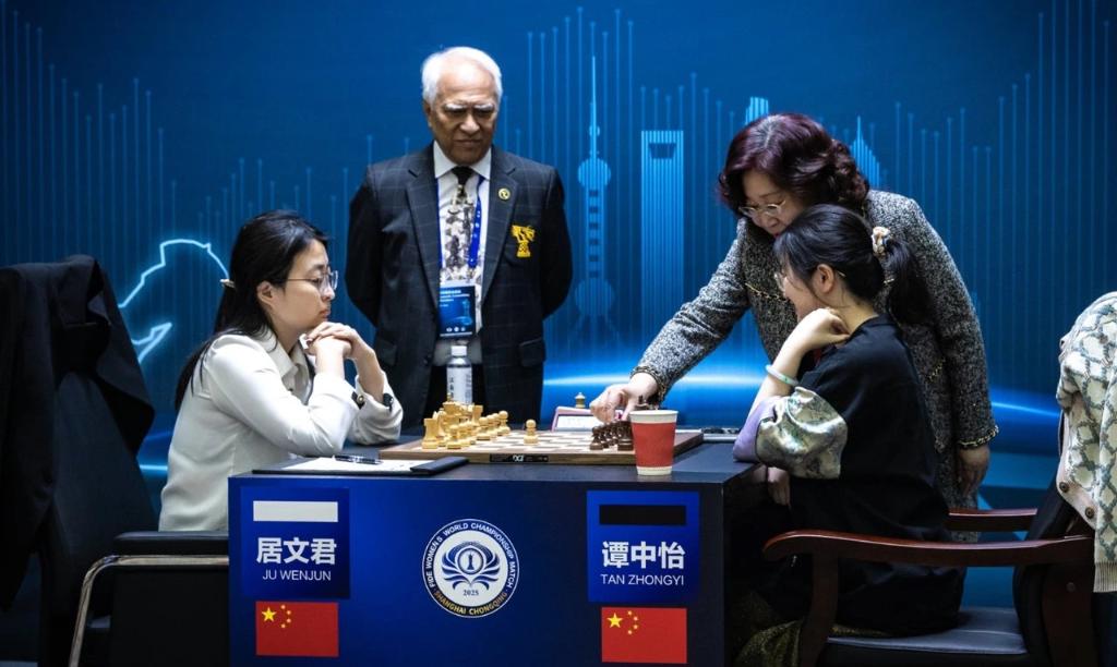 新华社上海4月9日电(记者许东远、郑直)2025年国际棋联女子世界锦标赛对抗赛9日在上海棋院结束第五盘比赛,现任棋后居文君执白经过4小时50分钟的战斗击败挑战者谭中怡,总比分3:2首次取得领先。
