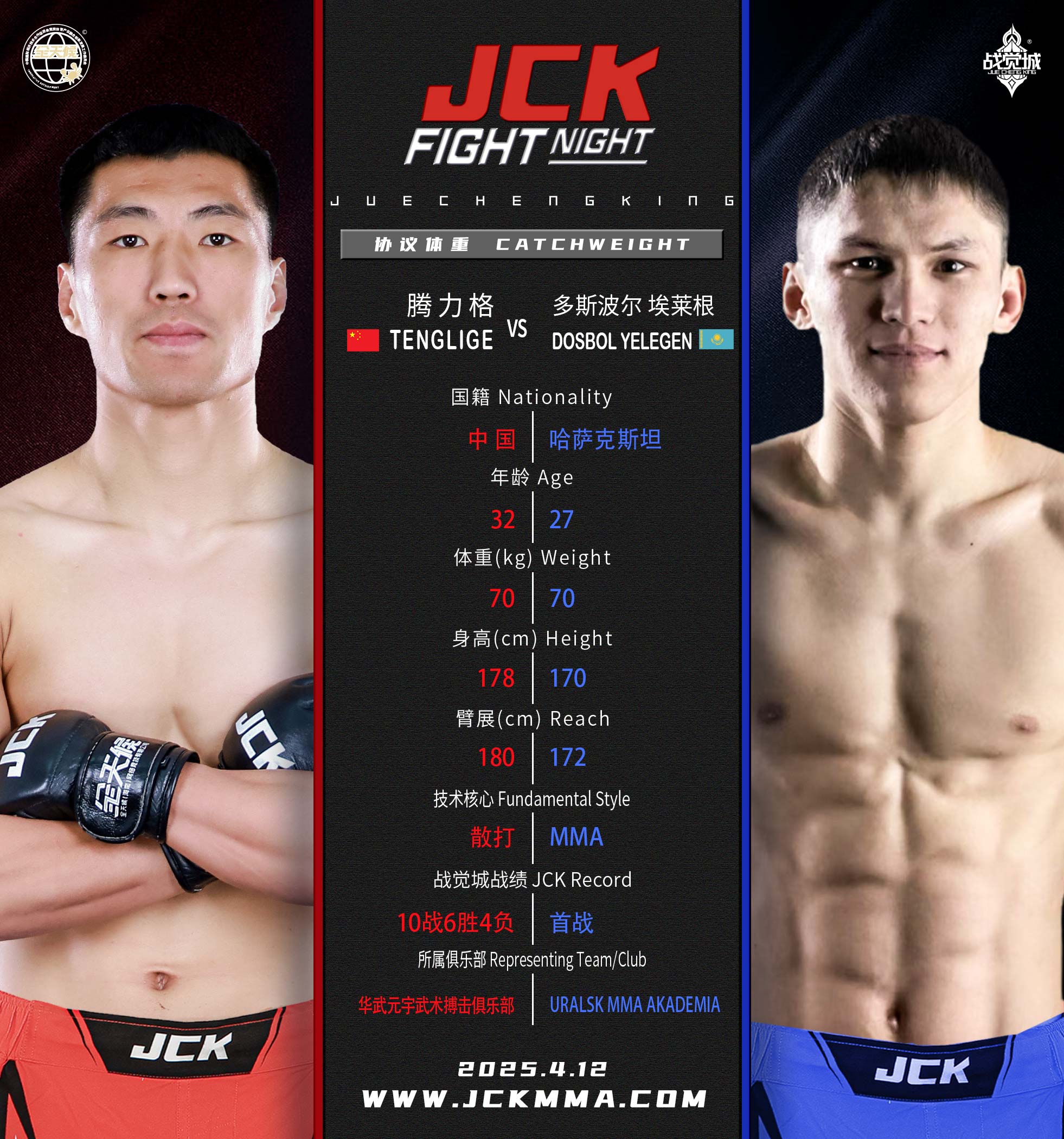 2025年4月12日,“阳光威宁·浪漫草海”JCK觉城之夜N97华武元宇联合赛贵州威宁站将拉开帷幕,头条主赛腾力格迎战哈萨克斯坦锦标赛冠军多斯波尔 埃莱根,联合主赛吴泽与尼基塔·巴尔塔巴耶夫对决,正赛部分衣西俄木迎战加吉穆拉德·哈基莫夫、张育赫对战亚历山大·齐里亚诺夫、李洪基迎战叶德力·木黑亚提。