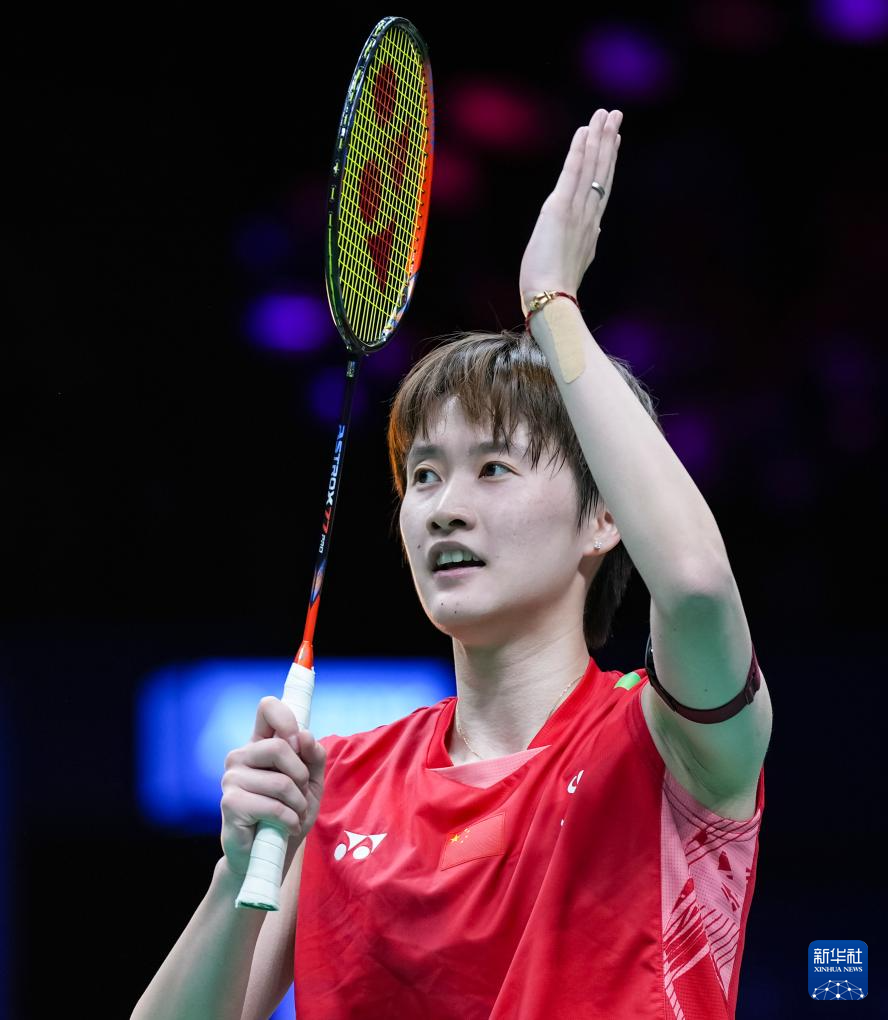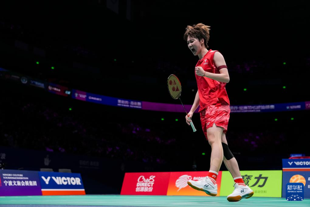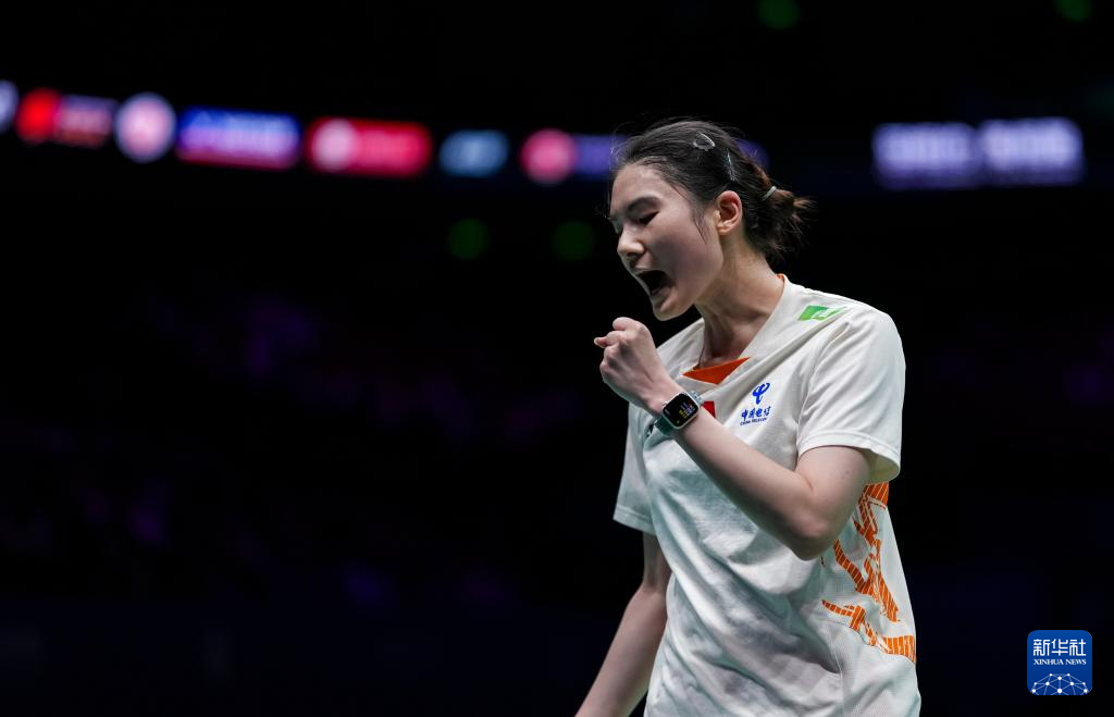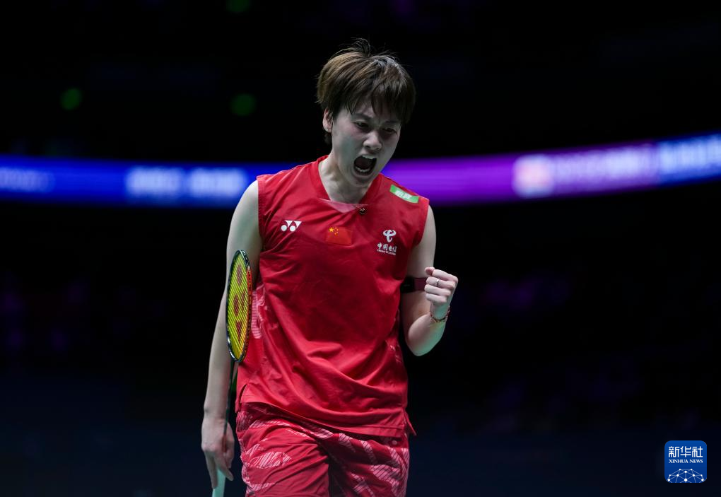 4月13日,陈雨菲在比赛中庆祝得分。