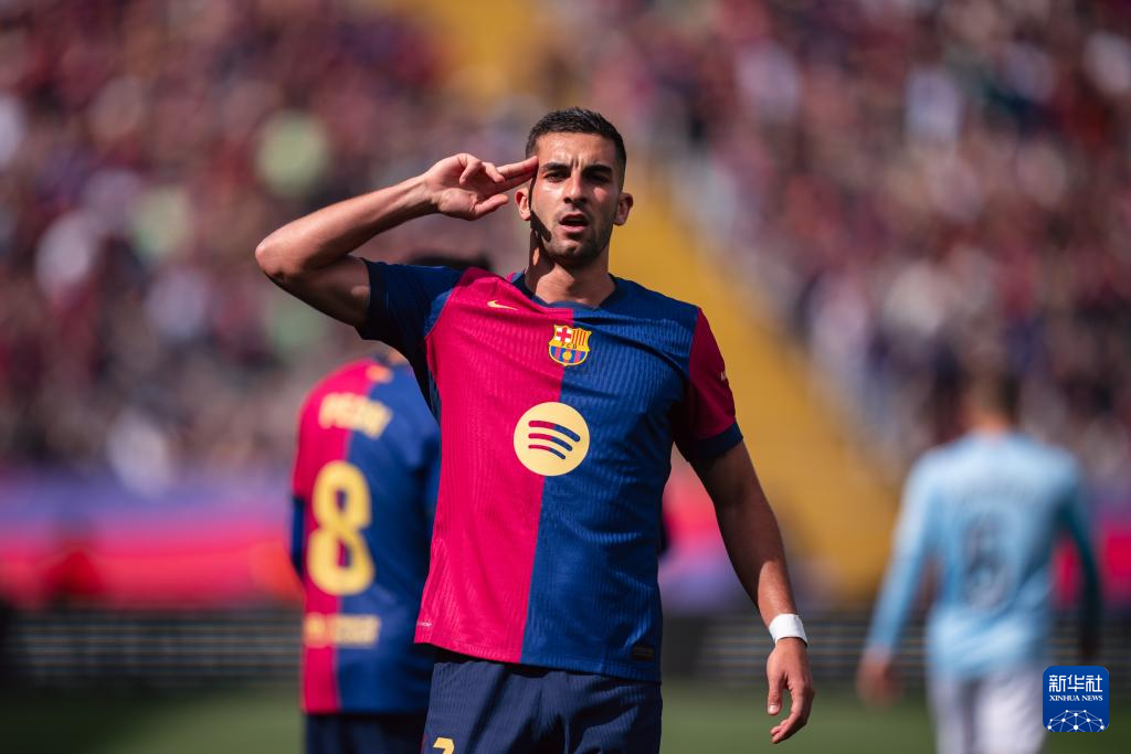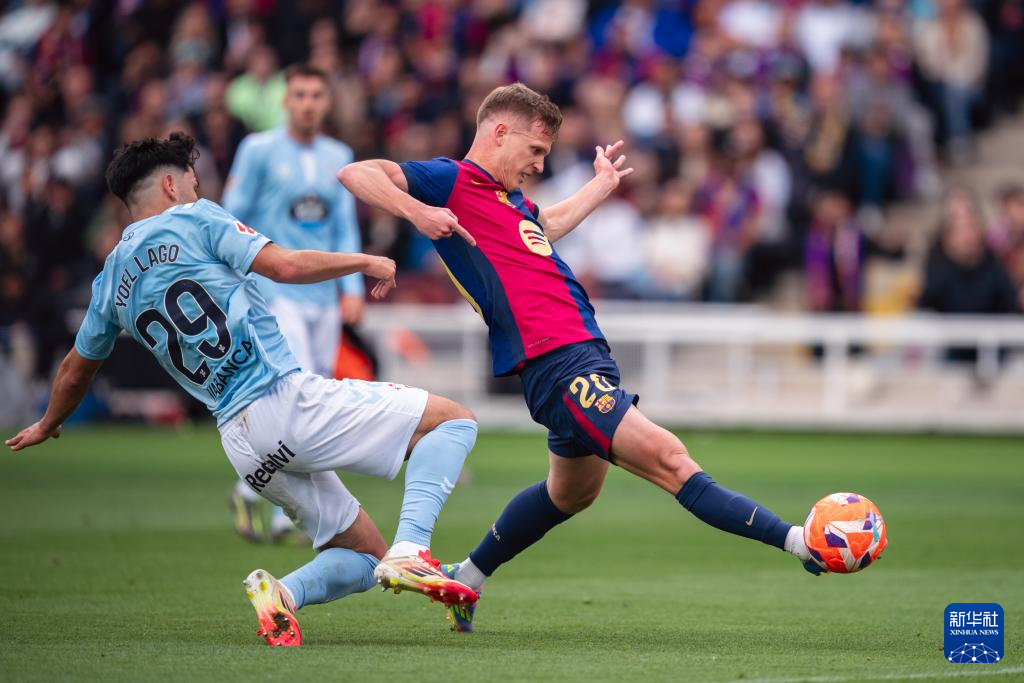 当日,在2024-2025赛季西班牙足球甲级联赛第32轮比赛中,巴塞罗那队主场4比3战胜塞尔塔队。
