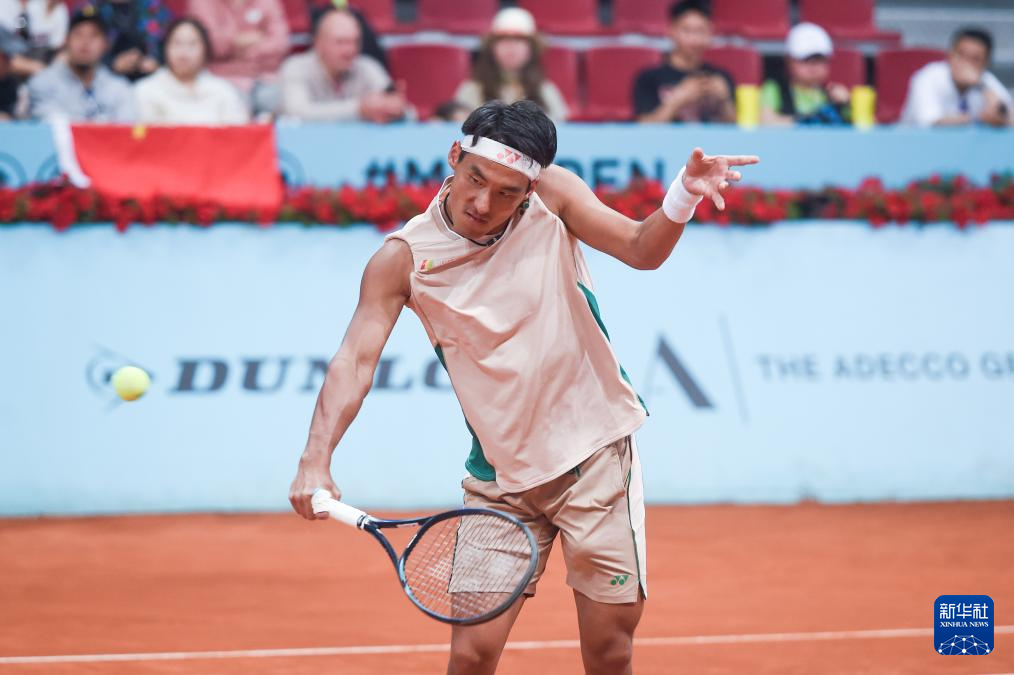 4月24日,布云朝克特在比赛中回球。