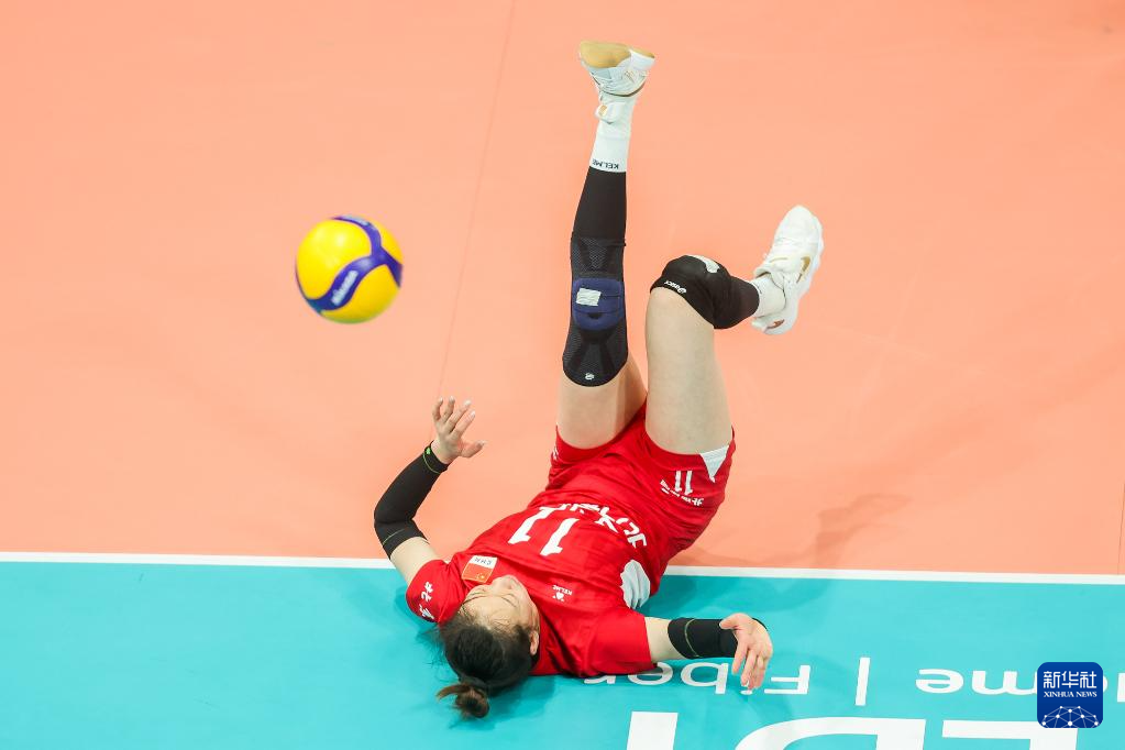 4月26日,北汽女排俱乐部队球员逯雨菲在比赛中。