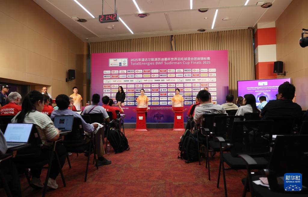 当日,2025年苏迪曼杯世界羽毛球混合团体锦标赛淘汰赛阶段抽签仪式在福建厦门凤凰体育馆举行。
