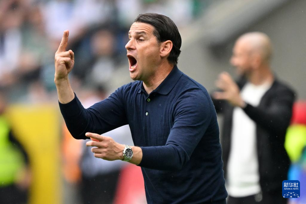 5月3日,门兴格拉德巴赫队主教练塞瓦内在场边指导。