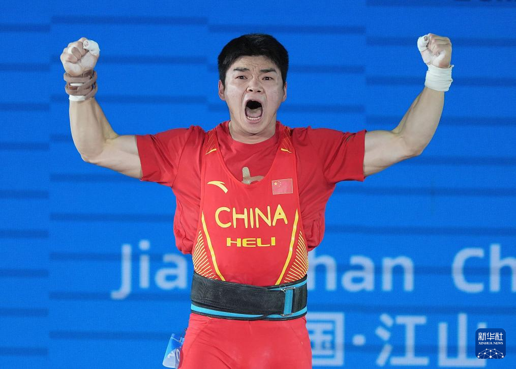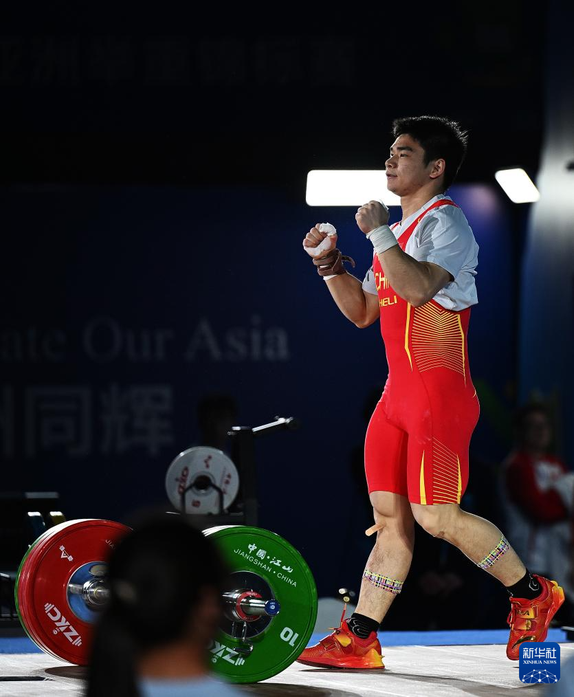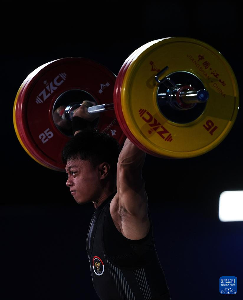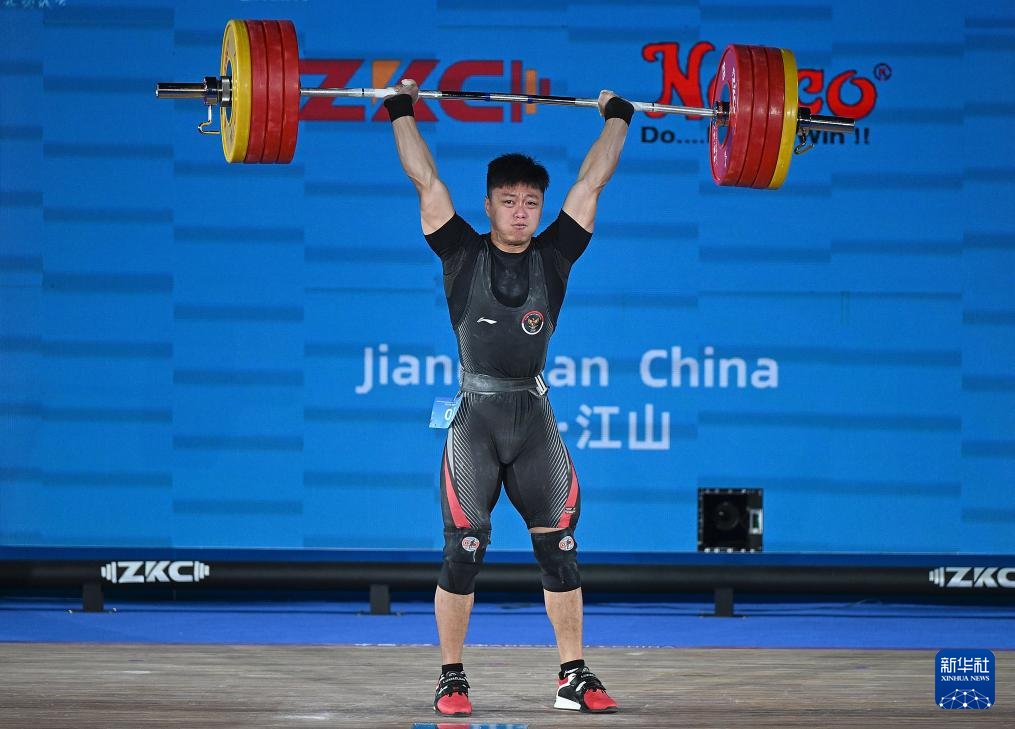 5月11日,印度尼西亚选手阿卜杜拉在比赛中庆祝最后一次试举成功并打破挺举世界纪录。最终,他获得抓举、挺举、总成绩三项冠军,并以205公斤的成绩打破挺举世界纪录。
