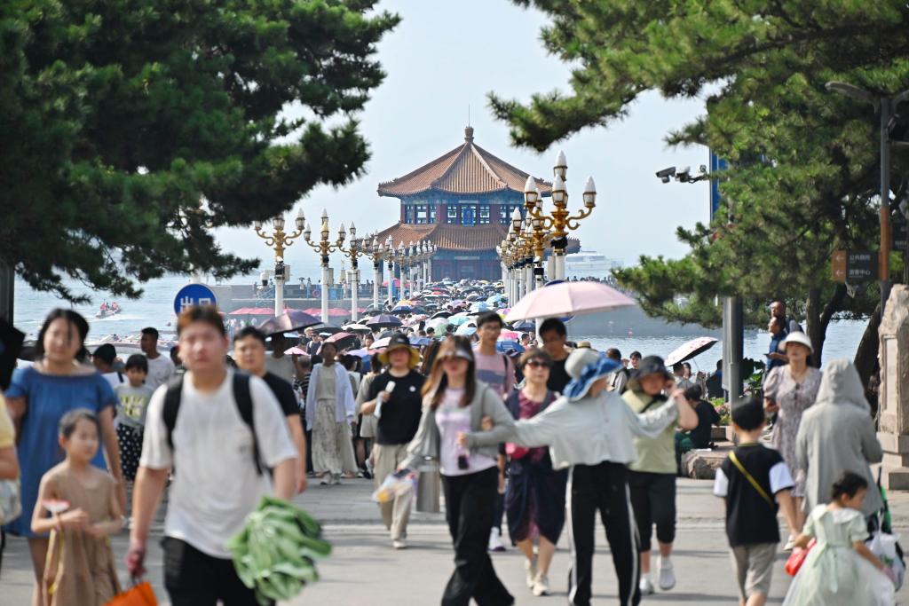 人们在青岛市南区栈桥景区游玩(2024年8月17日摄)。新华社记者 李紫恒 摄
