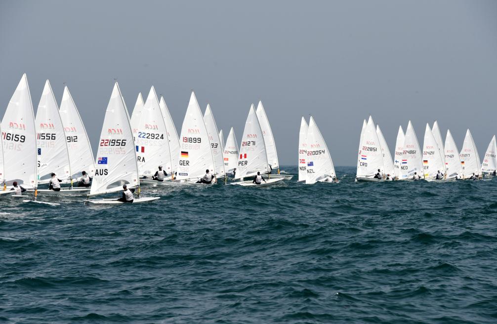 2025女子ILCA6级与男子ILCA7级世界帆船锦标赛在青岛举行。新华社记者 李紫恒 摄