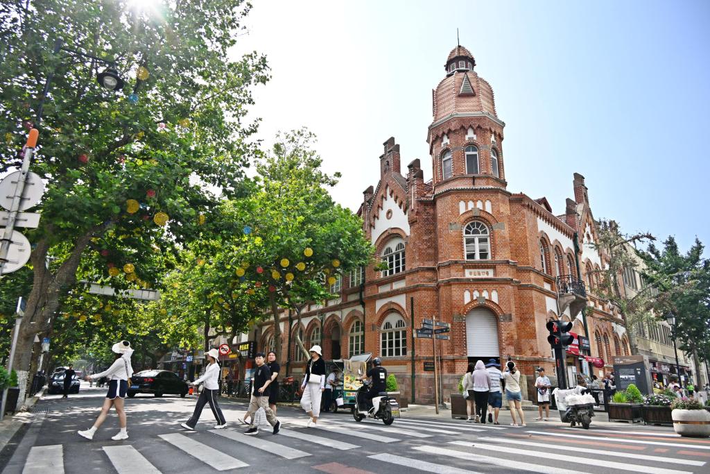 人们在青岛市南区历史文化街区游玩(2024年8月17日摄)。新华社记者 李紫恒 摄