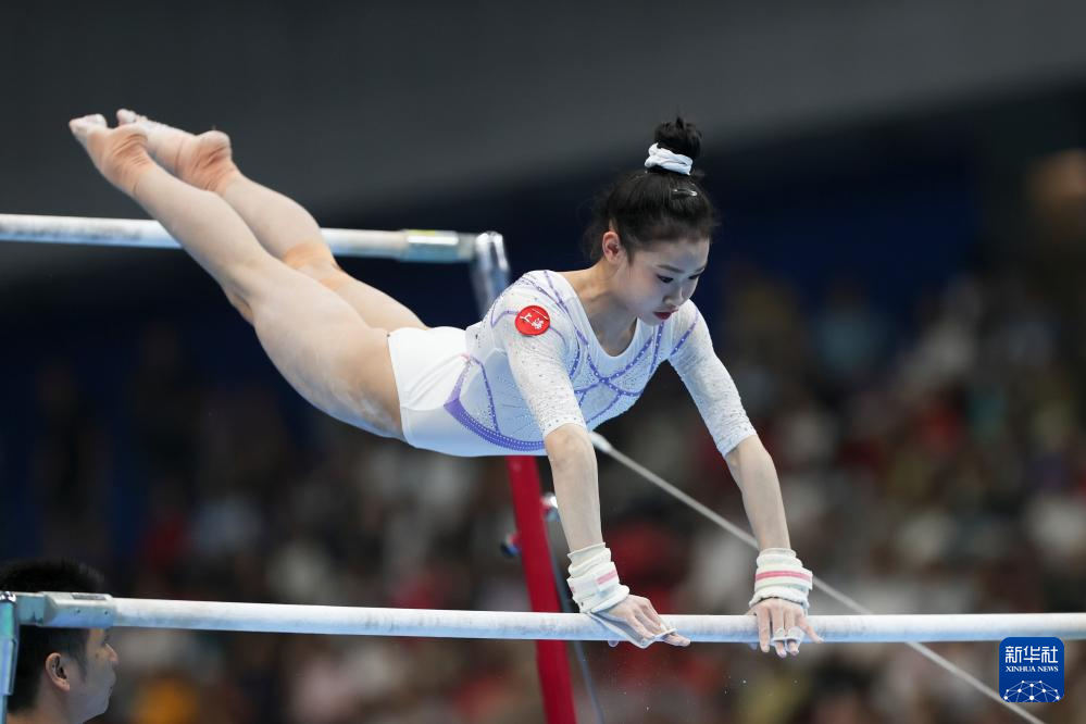 5月18日,广东思腾队选手钟圻在女子团体决赛高低杠比赛中。最终,广东思腾队获得亚军。