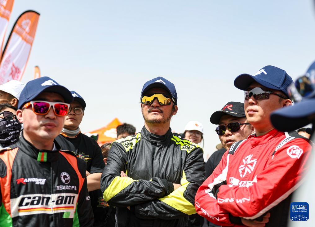 5月20日,驾长车队车手吴京(中)在发车仪式前。