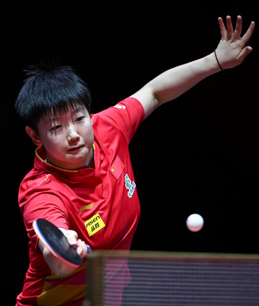 5月21日,孙颖莎在比赛中回球。新华社记者 贺长山 摄