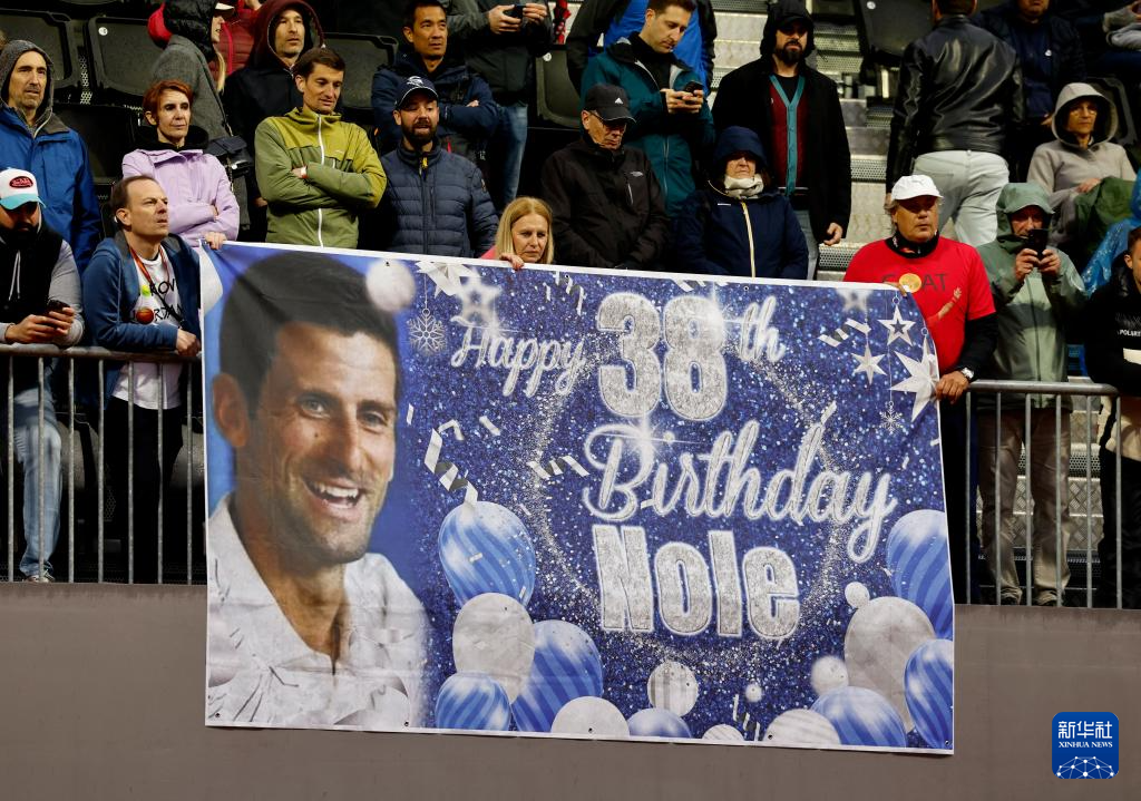 5月22日,观众在看台打出祝贺焦科维奇38岁生日的横幅。
