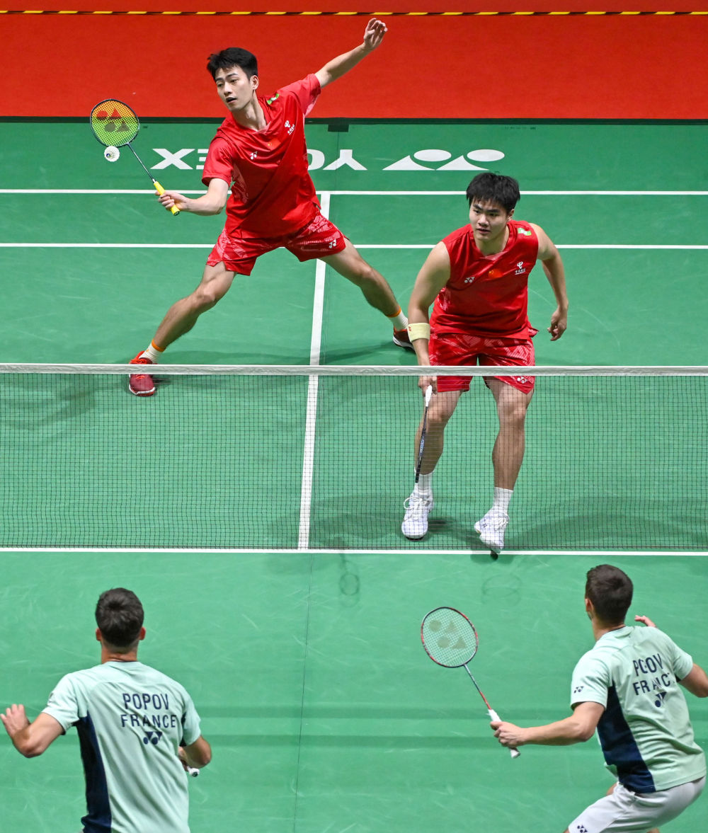 男双方面,梁伟铿/王昶凭借稳定发挥,以21:17、21:15击败法国组合大小波波夫,下一场将与日本组合保木卓朗/小林优吾争夺半决赛名额。