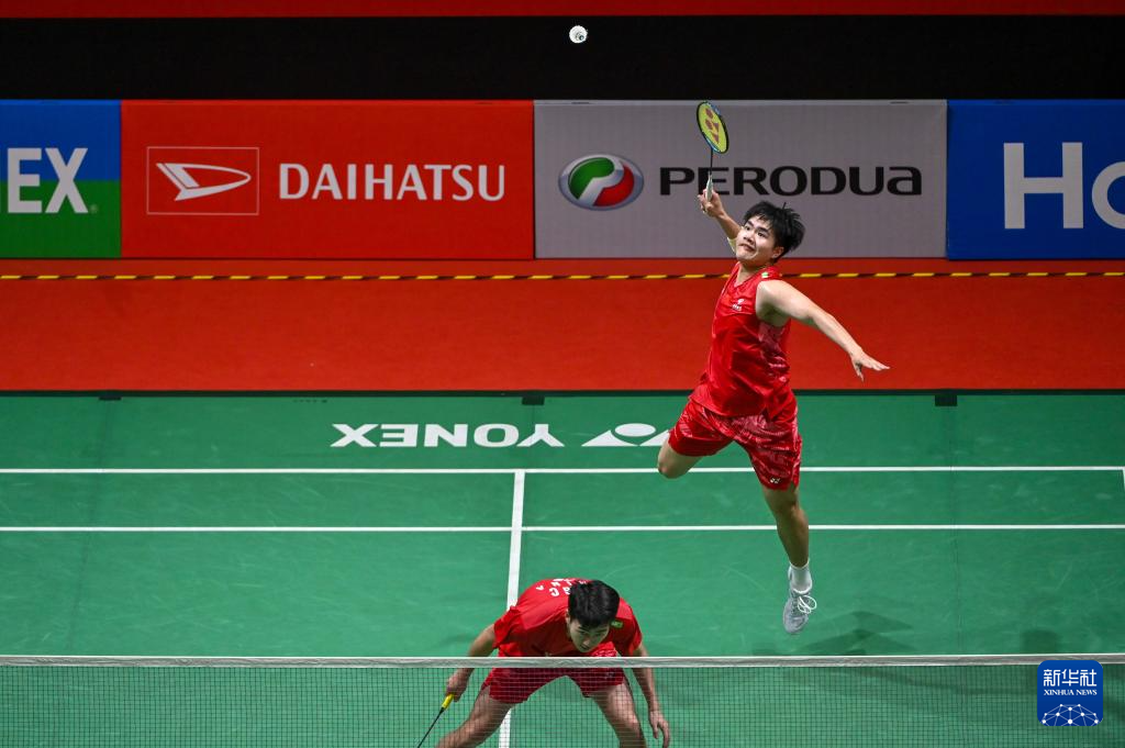 5月22日,梁伟铿(右上)/王昶(左上)在比赛中。
