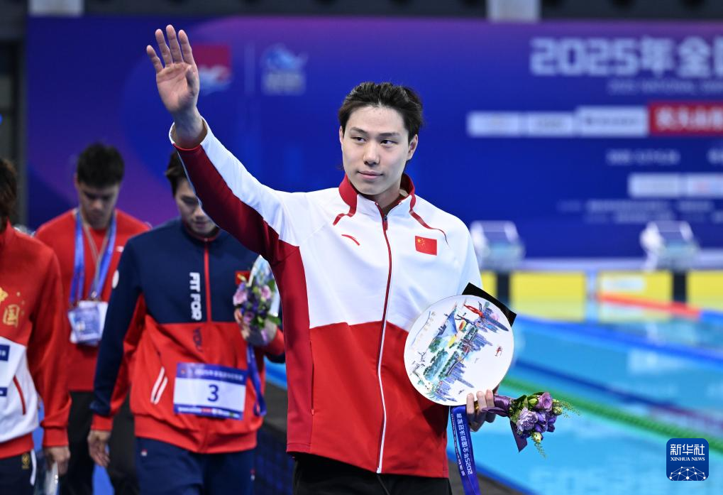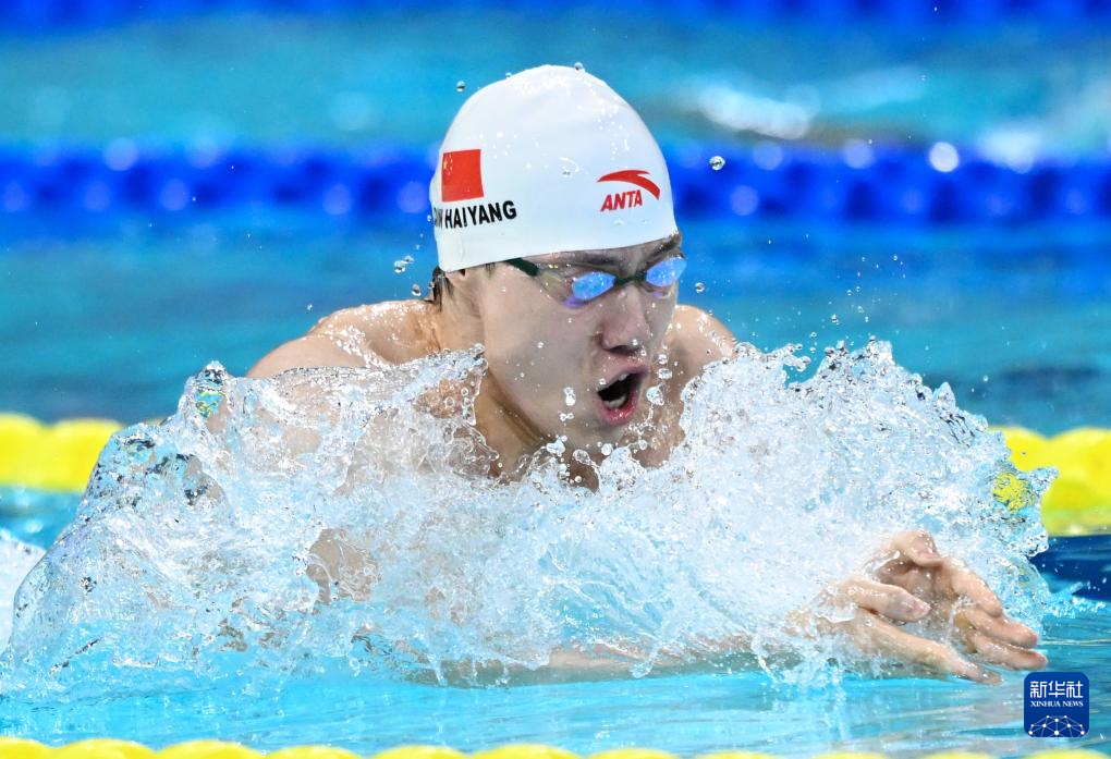 当日,在广东深圳举行的2025年全国游泳冠军赛男子200米蛙泳决赛中,上海安踏队选手覃海洋获得冠军。