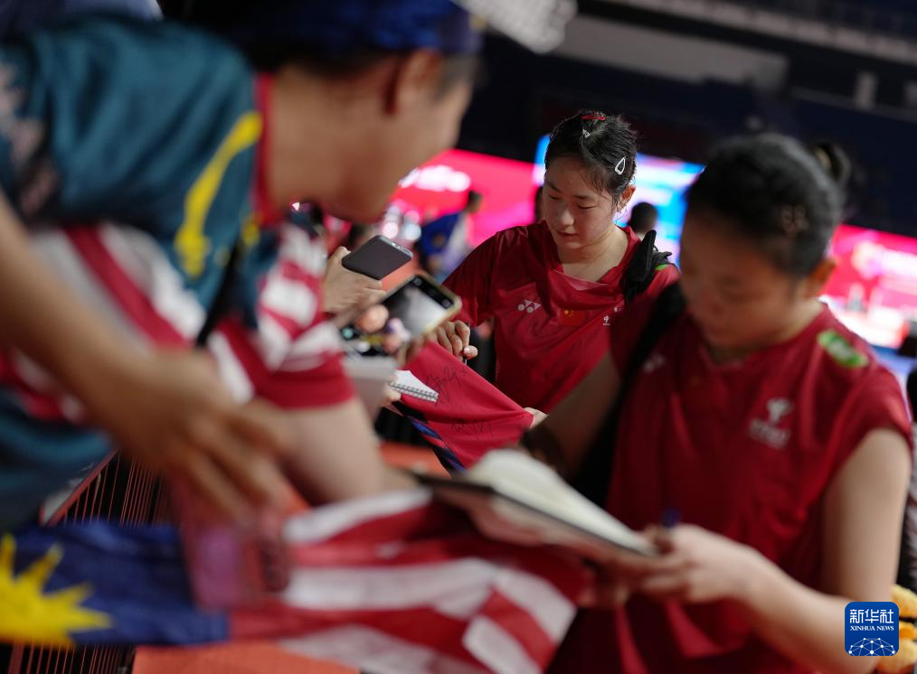 5月22日,坑姝良(右二)/李华洲(右一)在赛后为球迷签名。