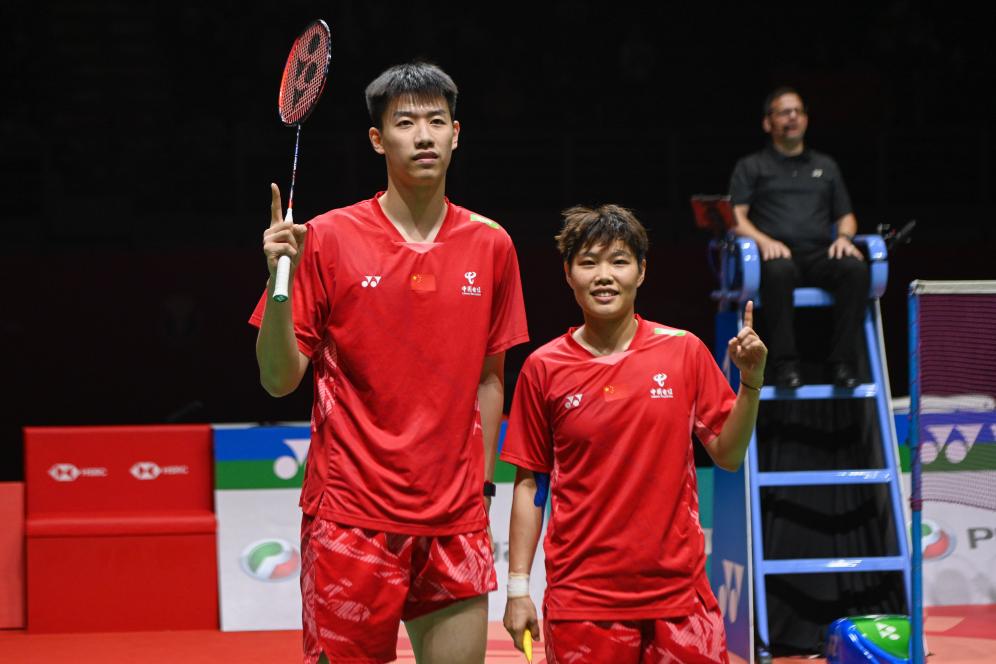 5月24日,冯彦哲(上)/黄东萍在比赛中。