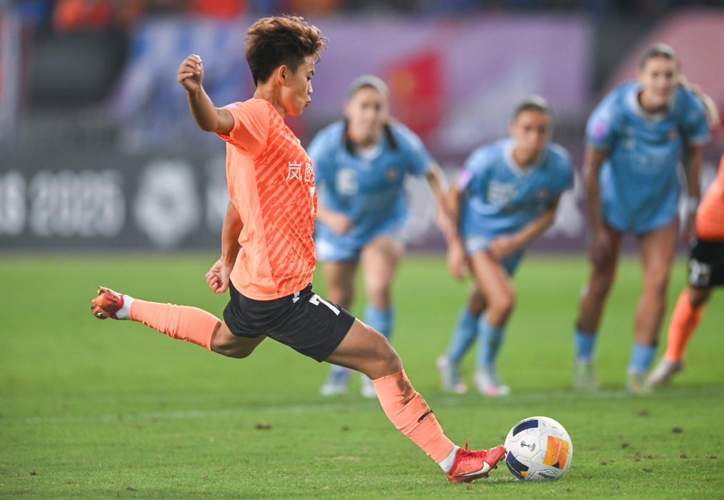 在决赛0:1落后的局面下,武汉队在90分钟补时最后阶段获得任意球机会,墨尔本城球员在禁区内手球,裁判经过查看视频后判罚点球,武汉本土球员王霜在第98分钟将球打进,比分变为1:1,随后比赛进入加时赛。