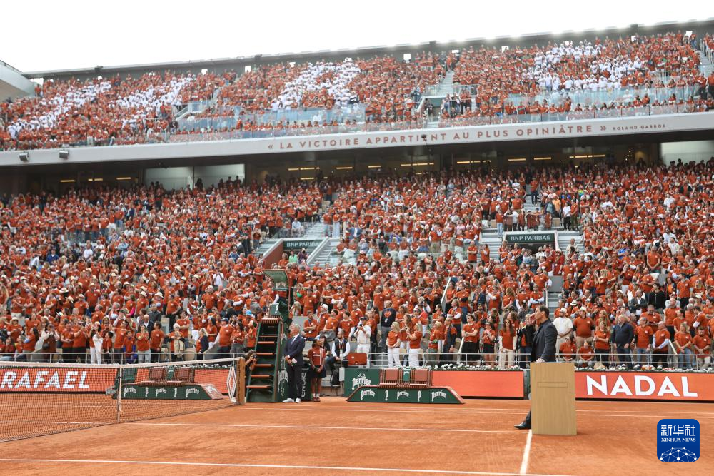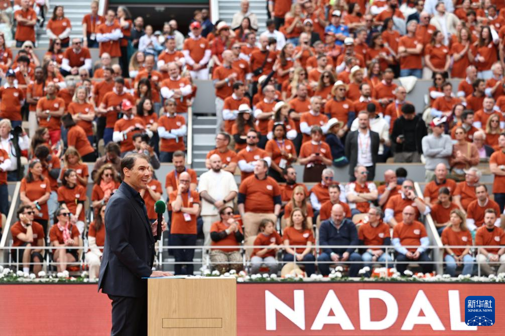 当日,2025年法国网球公开赛为西班牙网球运动员纳达尔举行致敬仪式。2024年11月19日,纳达尔在戴维斯杯网球赛总决赛四分之一决赛后正式退役。他共获得22个大满贯单打冠军,在法国网球公开赛上14次夺冠,是当之无愧的“红土之王”。