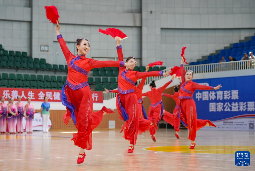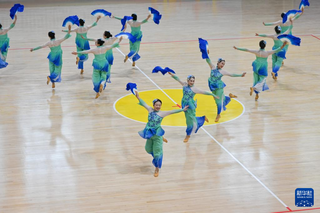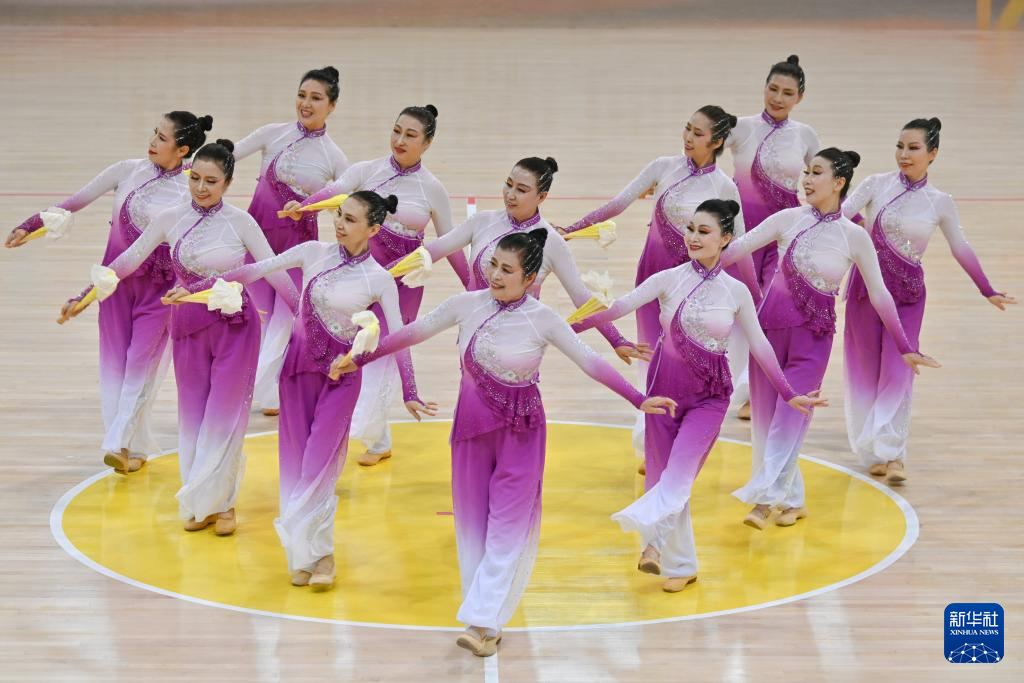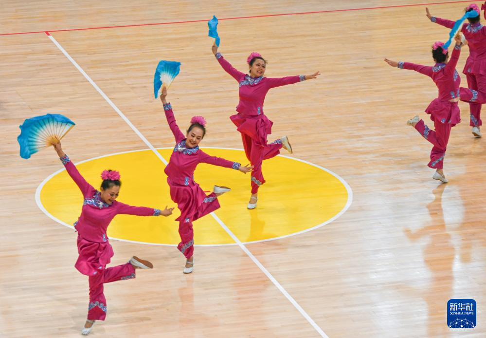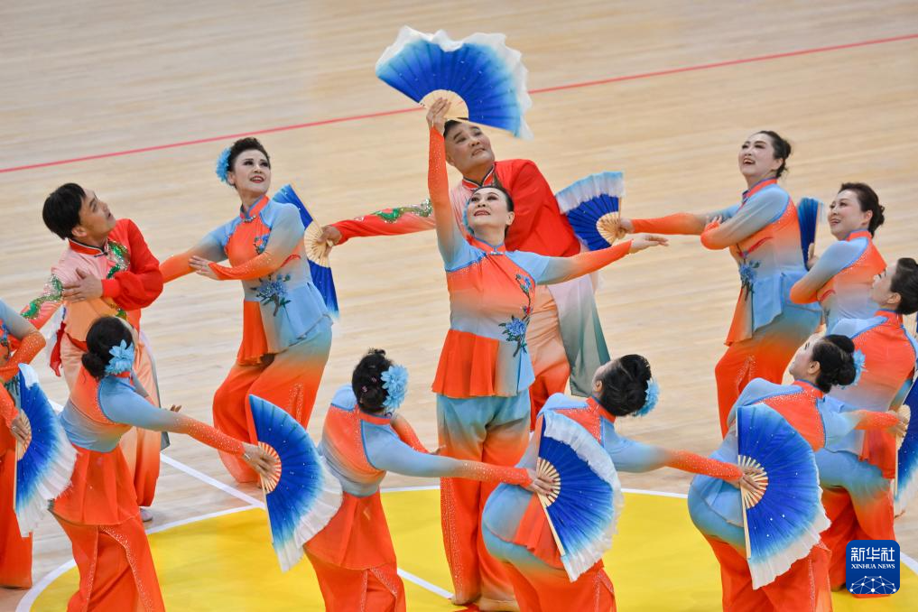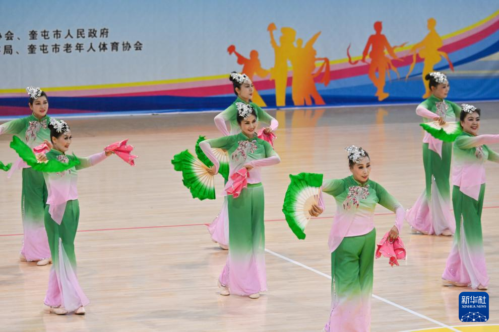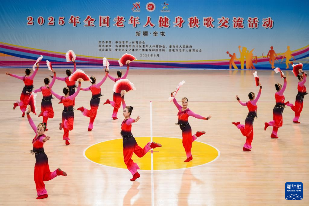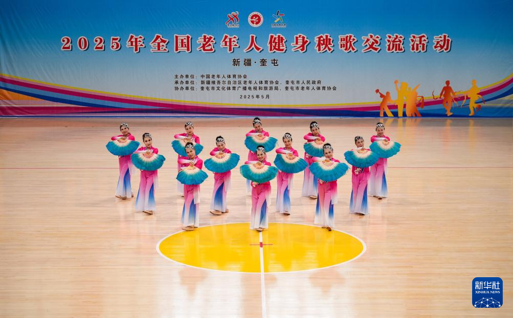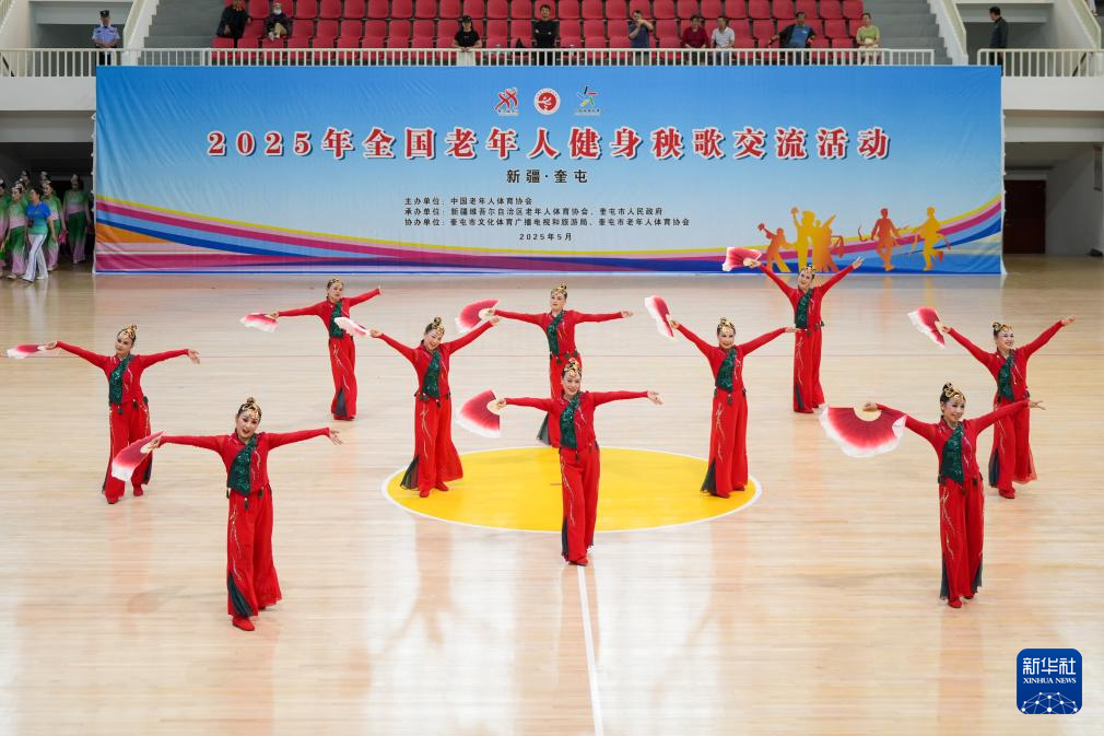 当日,2025年全国老年人健身秧歌交流活动规定项目比赛在新疆维吾尔自治区奎屯市体育馆完赛。