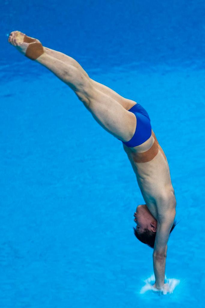 朱子锋在男子单人10米台比赛中。新华社记者 伍志尊 摄