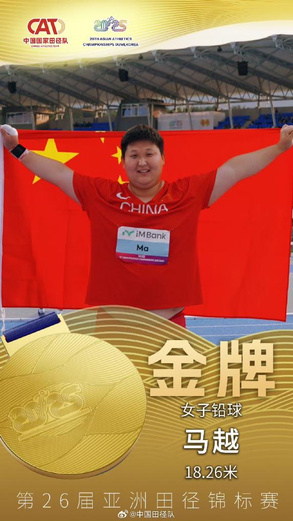 女子铅球项目上,中国队选手马越和宋佳媛分别以18.26米和17.78米的成绩分获冠、亚军。迪娜·奴尔兰在女子跳高决赛中名列第五。