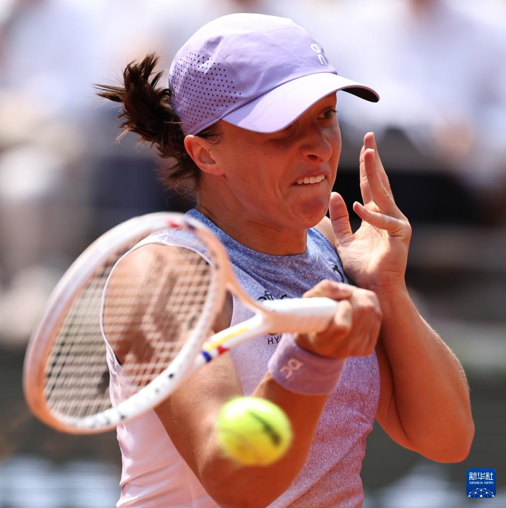 6月3日,斯维亚特克在比赛中回球。