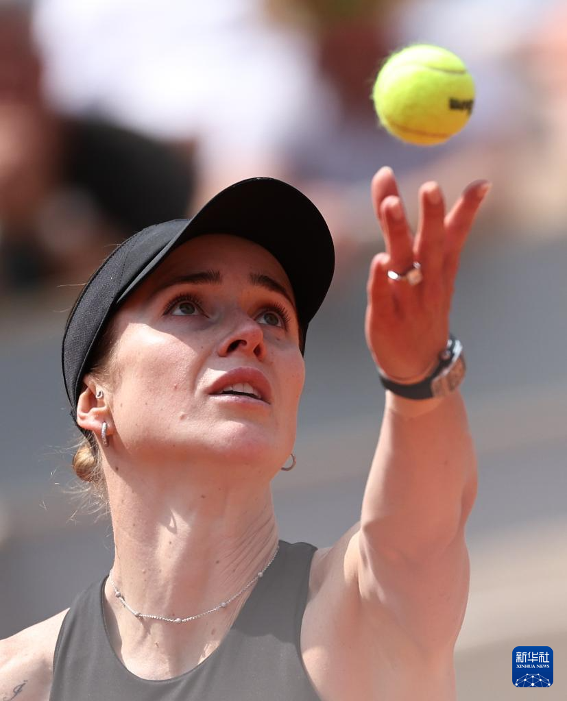 6月3日,斯维托丽娜在比赛中发球。