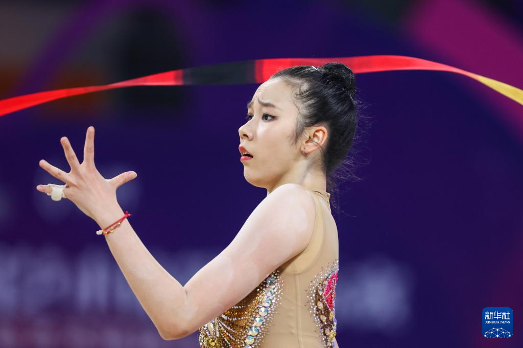 6月5日,四川队选手王籽涵在成年个人全能决赛带操比赛中。最终,她获得第四名。