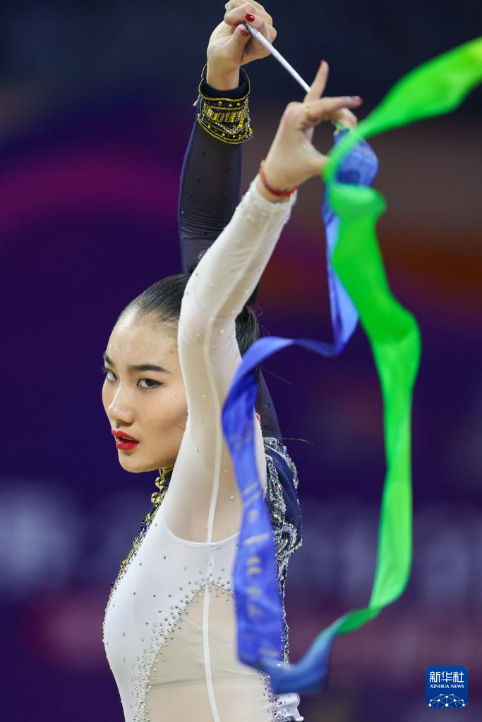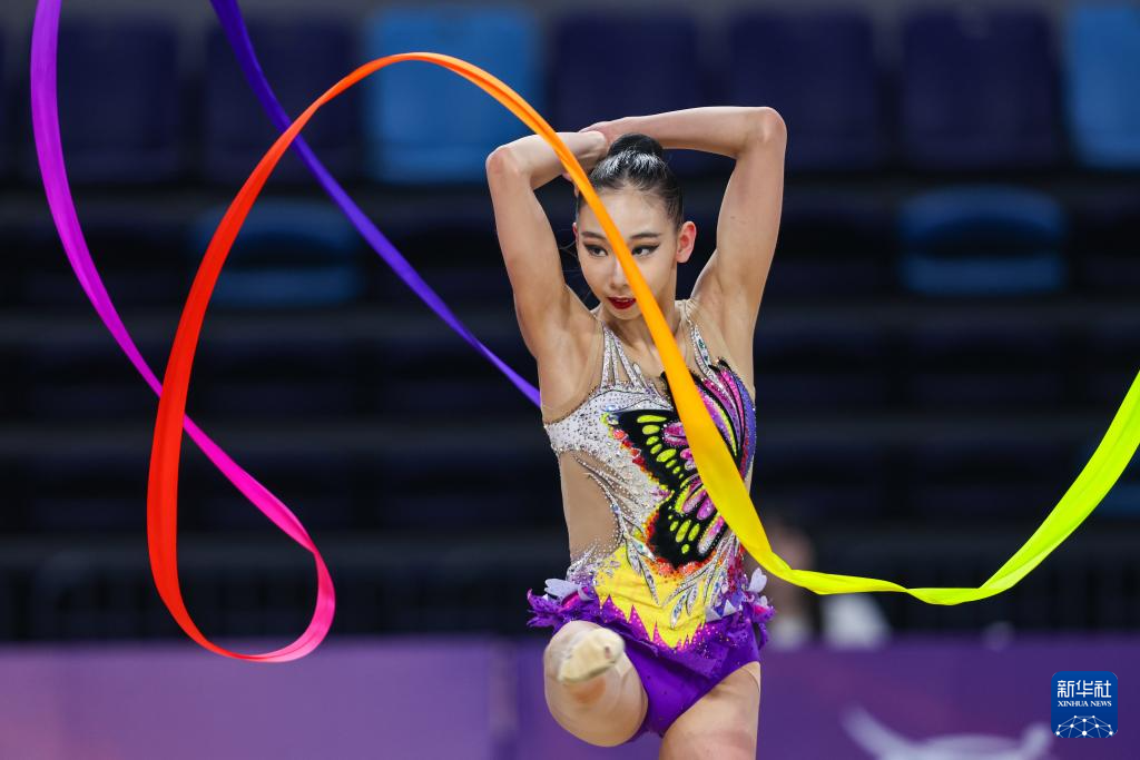 6月5日,河北队选手栗慧琳在成年个人全能决赛带操比赛中。最终,她获得第三名。