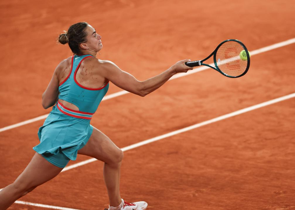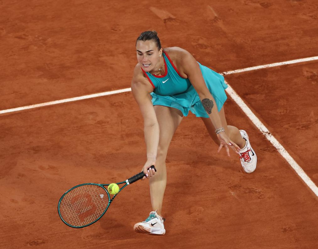 6月5日,萨巴伦卡在比赛中回球。
