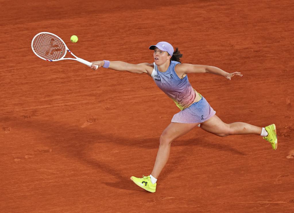 6月5日,斯维亚特克在比赛中回球。
