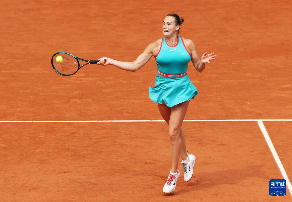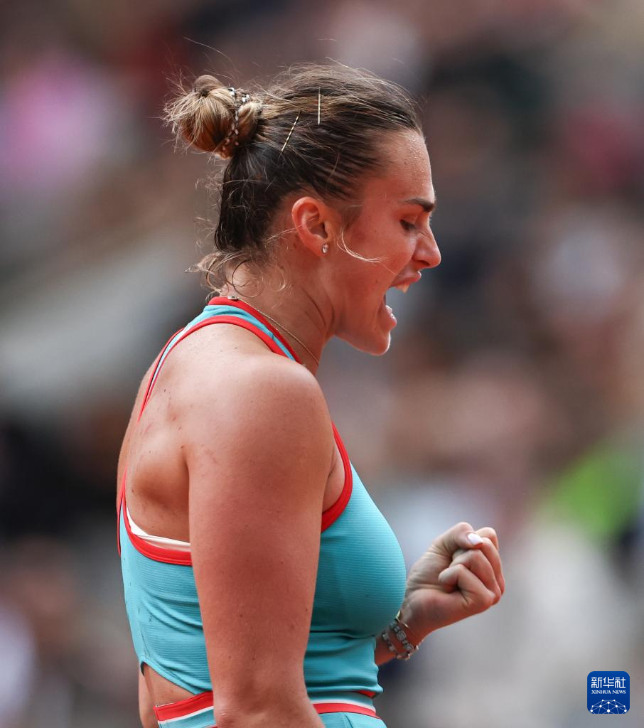 6月7日,萨巴伦卡在比赛中庆祝得分。