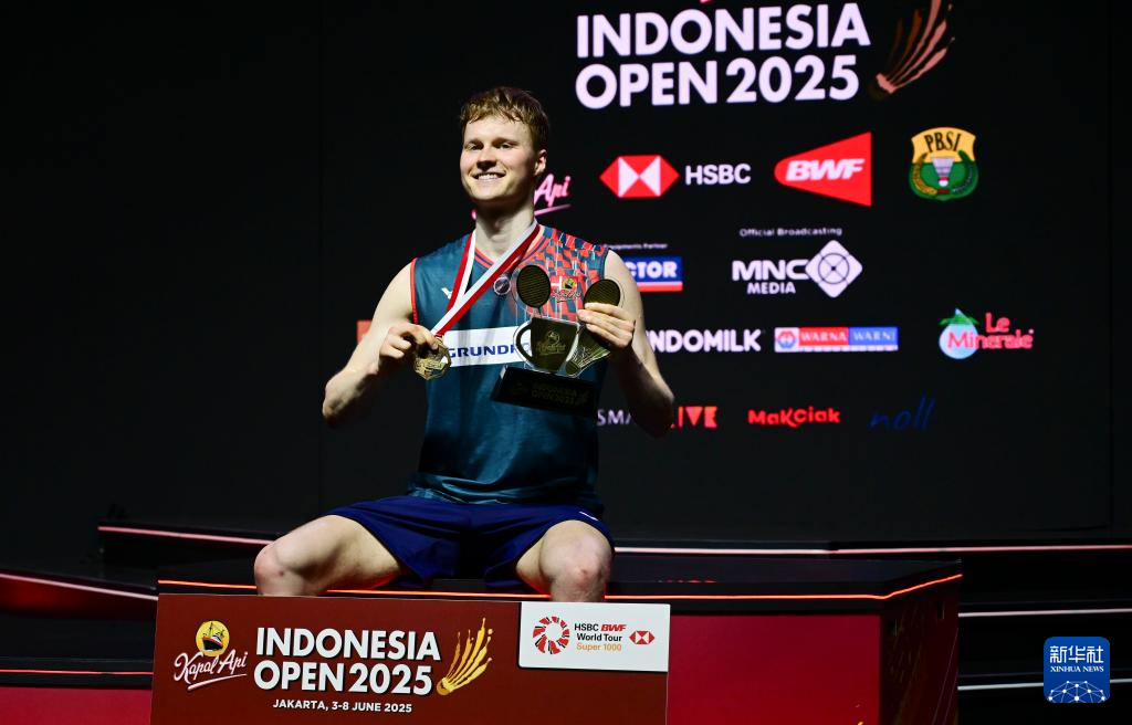 当日,在印度尼西亚雅加达举行的2025印尼羽毛球公开赛男单决赛中,丹麦选手安东森2比0战胜中国台北选手周天成,获得冠军。